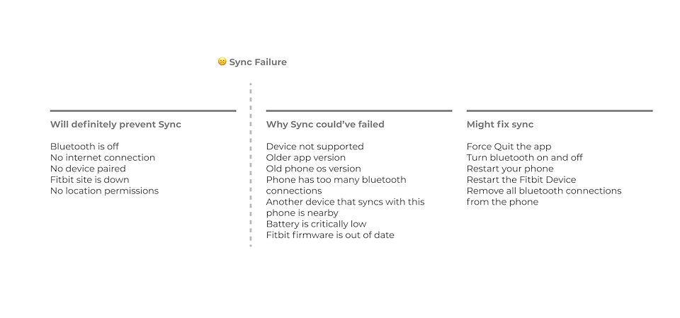 I partnered with our Customer Support (CS) team to read through email chat logs between agents and users having sync problems, and broke the issues up into three sections. This helped clarify what I was working on vs another team's sync initiative.