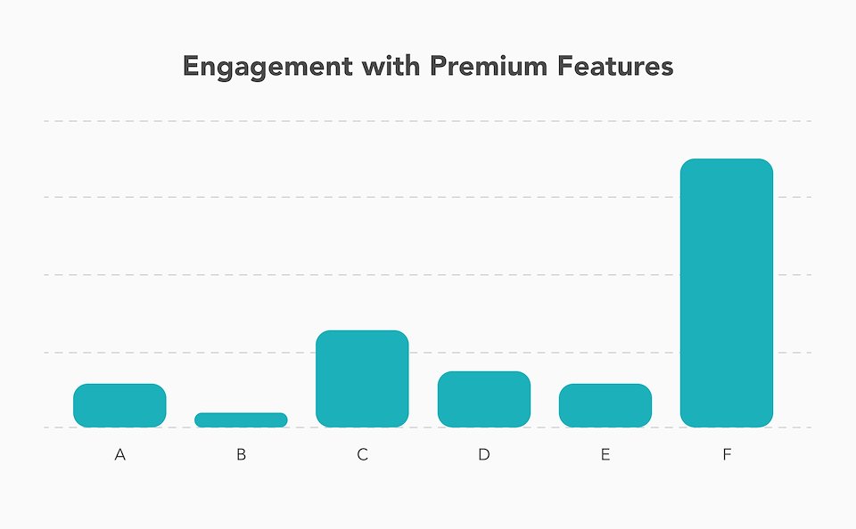 Towards the end of Q2 2020, my product partner Alex saw this engagement graph for Fitbit's Premium features. He quickly realized that features A, B, C, D, and E all lived inside Discover, Fitbit's content library.