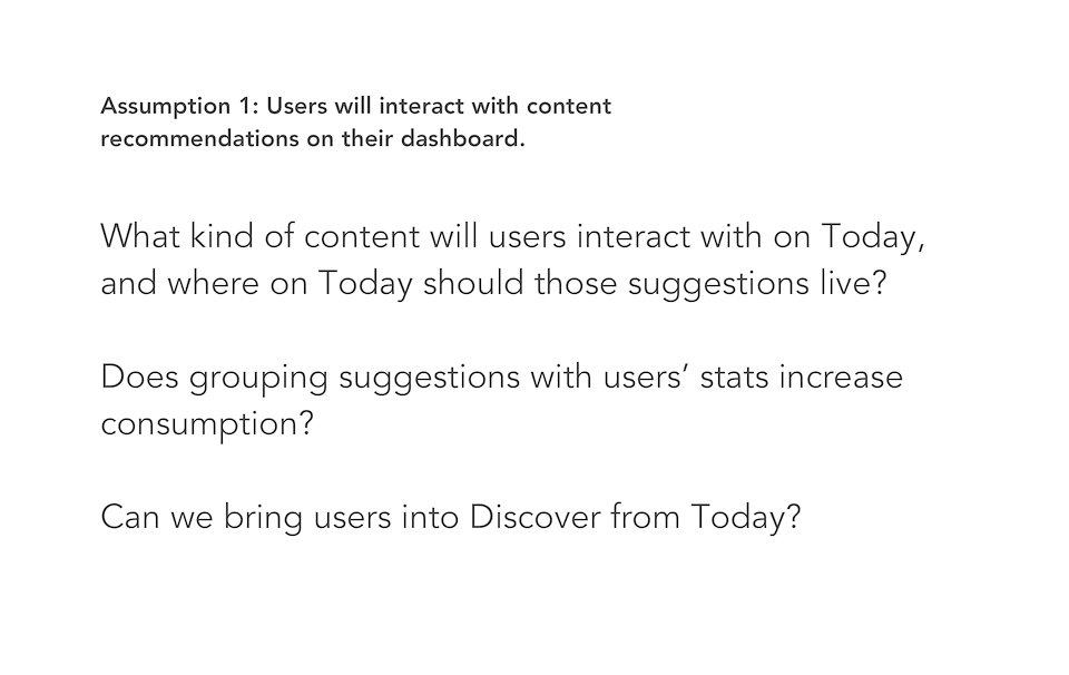 At the time, Fitbit's home screen saw ~17M users every week, while Discover only saw ~3M.