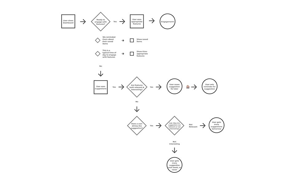 I started by creating this model of ideal content consumption with the home screen as the entry point. I used engagement research to draft this model then reviewed this with Fitbit's content team.
