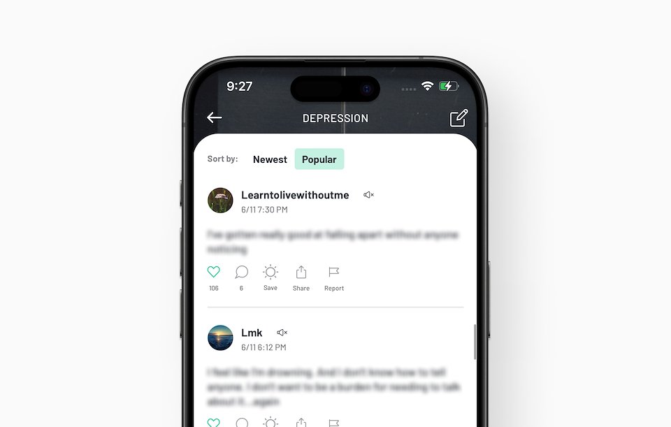 Sanvello's community was full of messages of hatred and self-harm, and the team and I felt uncomfortable recreating this experience in a mental health app. Our clients and external stakeholders, however, were expecting a rebuild of Sanvello's experience.