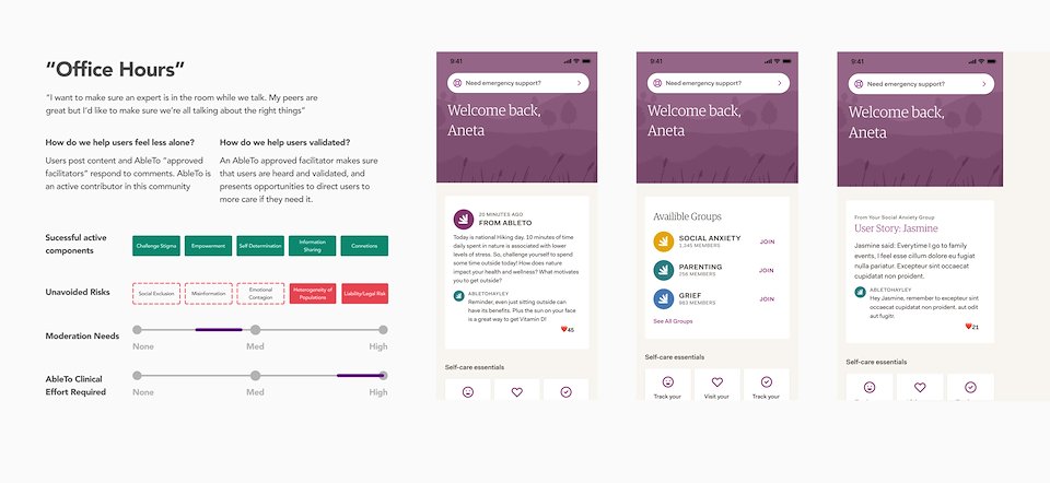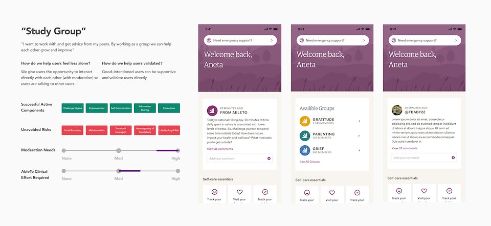 I then led the team in design exercises focused on managing our use of UGC, and three design directions emerged. I presented all three approaches to company leadership to get their thoughts on which was most appropriate for AbleTo.