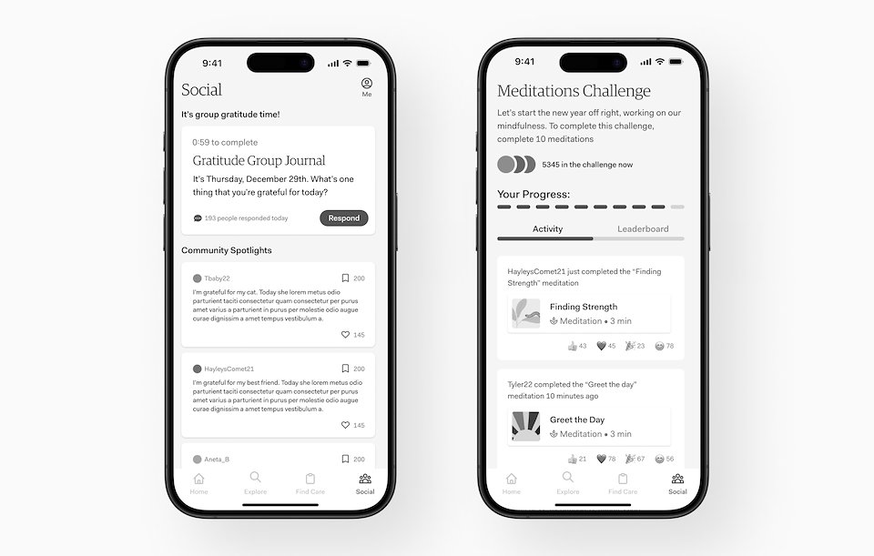 Over the course of six months in 2022, I designed a new social experience for AbleTo’s “Self Care” app. This feature aimed to connect users through shared experiences, boost overall user engagement and satisfaction, and maintain a safe space as part of a mental health experience. I was the sole designer on this project, working with my product manager, clinical partner, tech leads, user researcher, and copywriter.