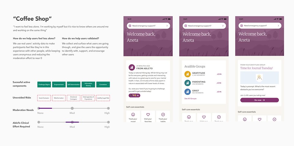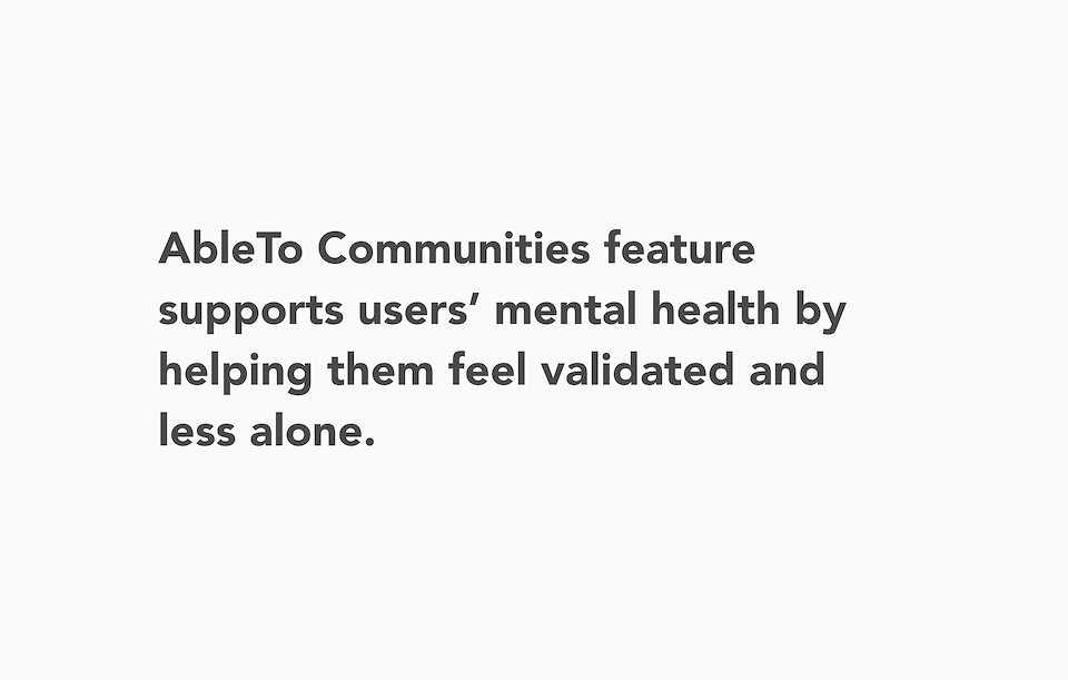 I revisited Sanvello's experience and aligned the team and stakeholders on this problem statement: The [AbleTo Communities feature] supports users' mental health by helping them feel validated and less alone. This problem statement would keep us guided and focused while designing, and help position a new experience to the stakeholders.