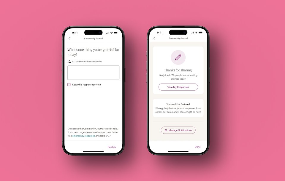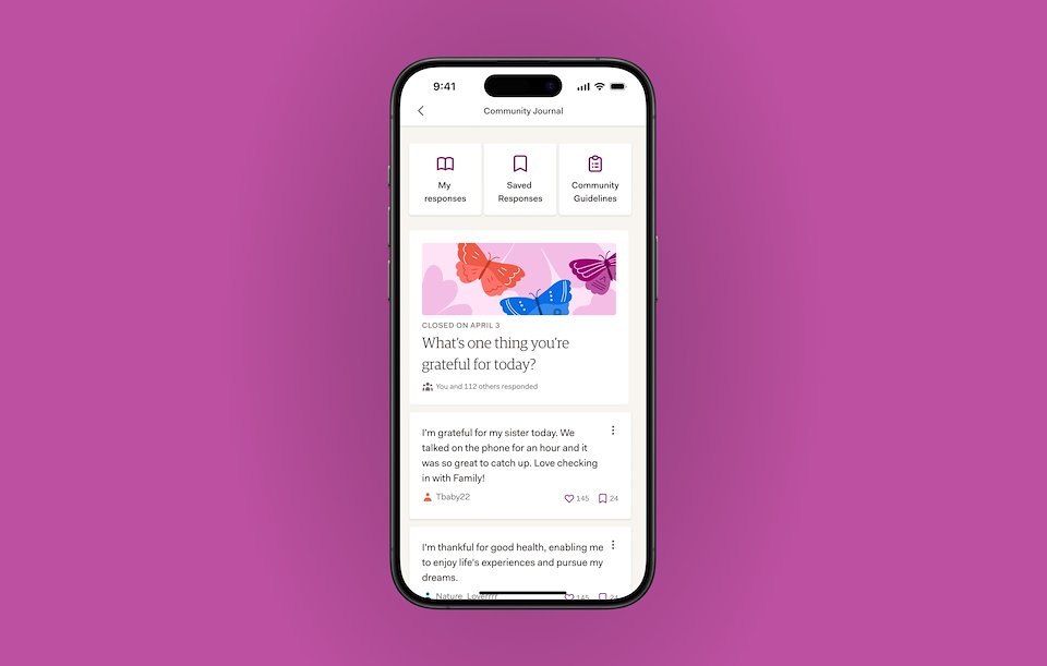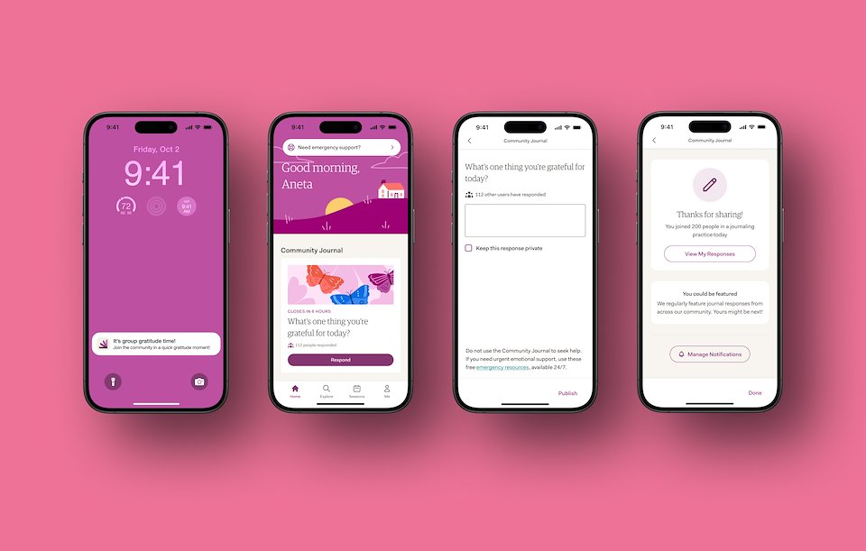 CJ prompts users with a question twice a week, focusing on "strength-based" questions to help keep responses positive. A push notification helps bring users into the app.