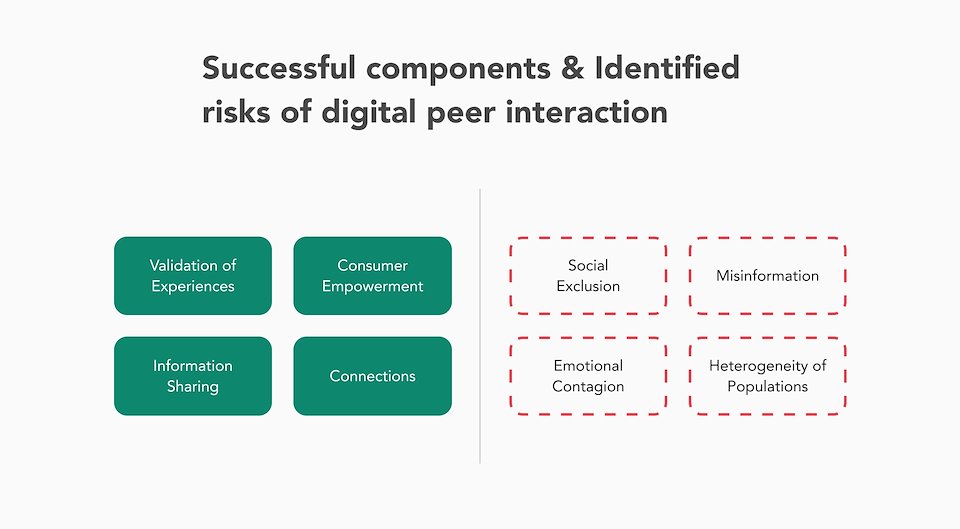 Before we explored solutions, my clinical partner and I reviewed several other health-focused social spaces. We identified user-generated content (UGC) as one of the riskiest components of a social experience and created a more general set of pros and cons for social features in mental health experiences.